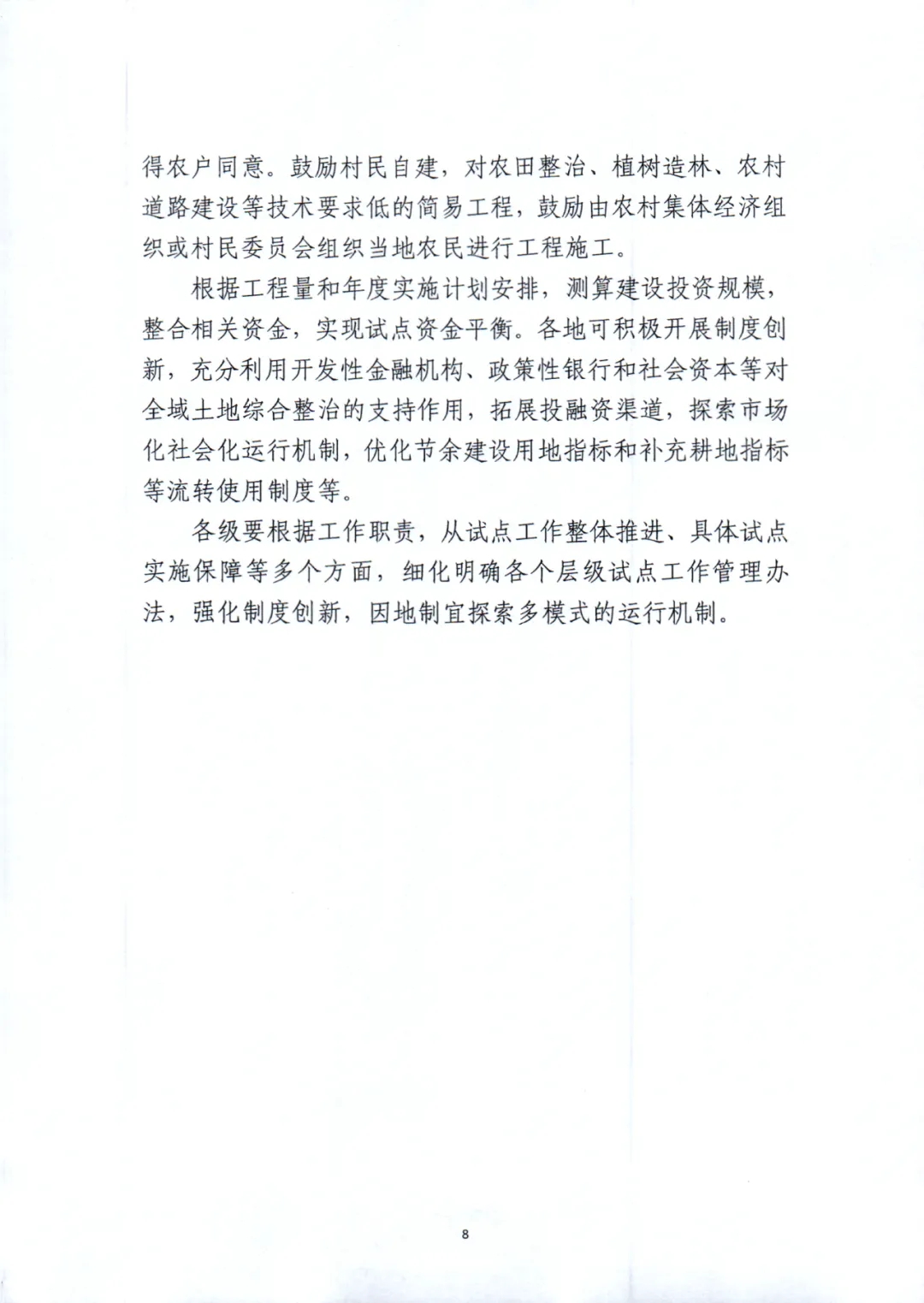 一是,要探索市场化、社会化运行机制,进行制度创新。拓展投融资渠道,充分利用开发性金融机构、政策性银行和社会资本等对全域土地综合整治的支持作用。